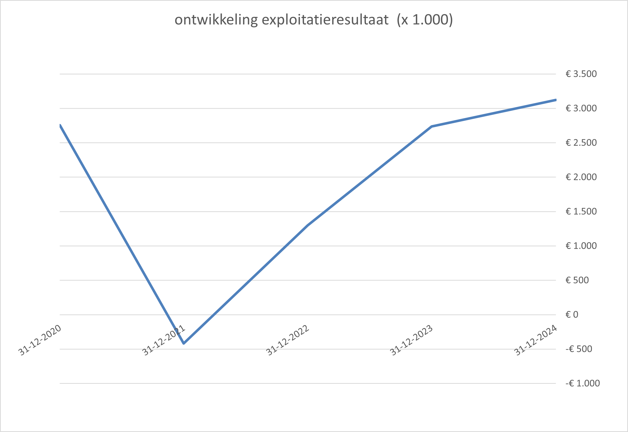 Terug naar navigatie - Grondbeleid - Verwacht resultaatHet verwachte resultaat op eindwaarde (= na het afsluiten van alle lopende exploitaties in 2027) bedraagt een verlies van € 3,1 miljoen.