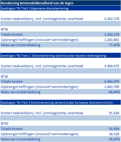 De gemeente levert op aanvraag van individuele burgers een uiteenlopend pakket aan diensten. Door het heffen van leges verhalen we de kosten die we hiervoor maken in principe op de burger die de dienst afneemt. Voorbeelden zijn het verstrekken van een paspoort of het verlenen van een vergunning. Net als bij de Rioolheffing en Afvalstoffenheffing geldt dat de tarieven in de Legesverordening maximaal kostendekkend zijn. De kostendekkendheid dient te worden beoordeeld op de verhouding tussen de kosten en opbrengst per titel uit de Legesverordening. In 2026 gaan wij de kostendekkendheid van onze leges onderzoeken. Hierbij kijken we naar de maatschappelijke effecten van het verhogen van de kostendekkendheid van de leges.