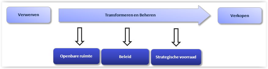 Alle gronden die in gemeentelijk bezit zijn, vormen samen de grondportefeuille. Met portefeuille management bereiken we dat we de gronden effectief en efficiënt inzetten. In ons grondbeleid verwoorden we hoe we dat doen en welke instrumenten we daarbij inzetten. Om ons grondbeleid uit te kunnen voeren moeten keuzes gemaakt worden met betrekking tot de ‘levenscyclus’ van onze gronden: verwerven, transformeren, beheren en uitgeven.